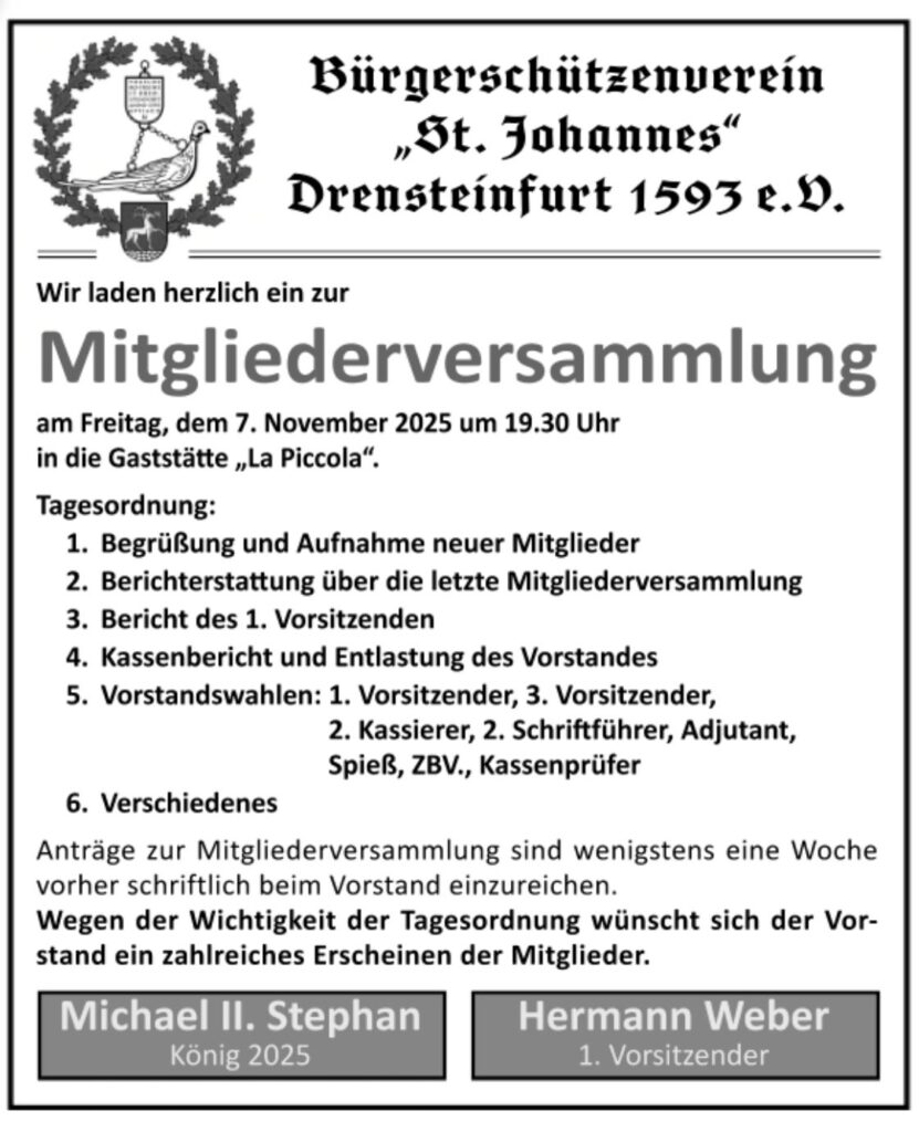 Mitgliederversammlung 07.11.2025